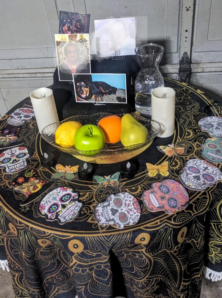 The mission is positioned atop a box adorned with carved-out and painted imagery on all sides, symbolizing the multicultural and accepting nature of the city's people, its history, and its present. Torches illuminate the surroundings at night, guiding the way to the entrances. Inside, a blend of modern visionary art and paintings in the traditional style encapsulates the duality within the city's artist community, renowned for its prolific street art and appreciation for old methods. One of the walls is dedicated to an Ofrenda, a family altar, symbolizing family as the cornerstone of San Antonio's existence throughout its history and cultural blend.